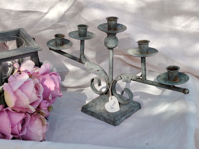 Ref.3189 : candelabro de metal gris antic (alt : 25 cm, ancho : 42 cm, peso : 450 g)