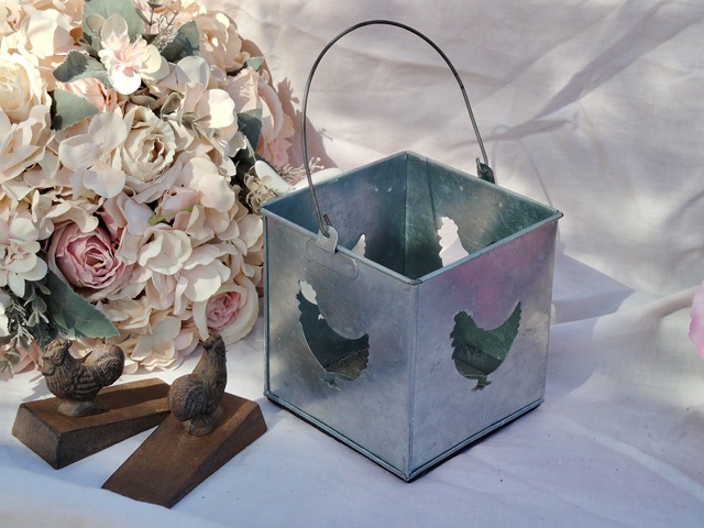 Ref.3196 : porta-vela de zinc para 5 velas de té (14 cm x 14 cm x 15 cm, peso : 385 g)