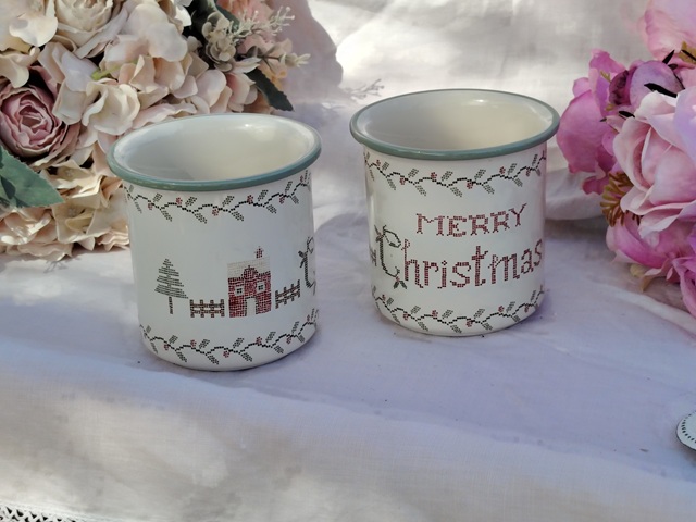 Ref.3205 : 2 tarros navideños de cerámica (alt : 12 cm, diámetro : 10 cm, peso : 550 g)