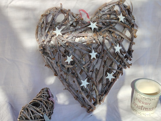 Ref.3050 : corazón decorativo de mimbre para colgar (20 cm x 20 cm, peso : 75 g)