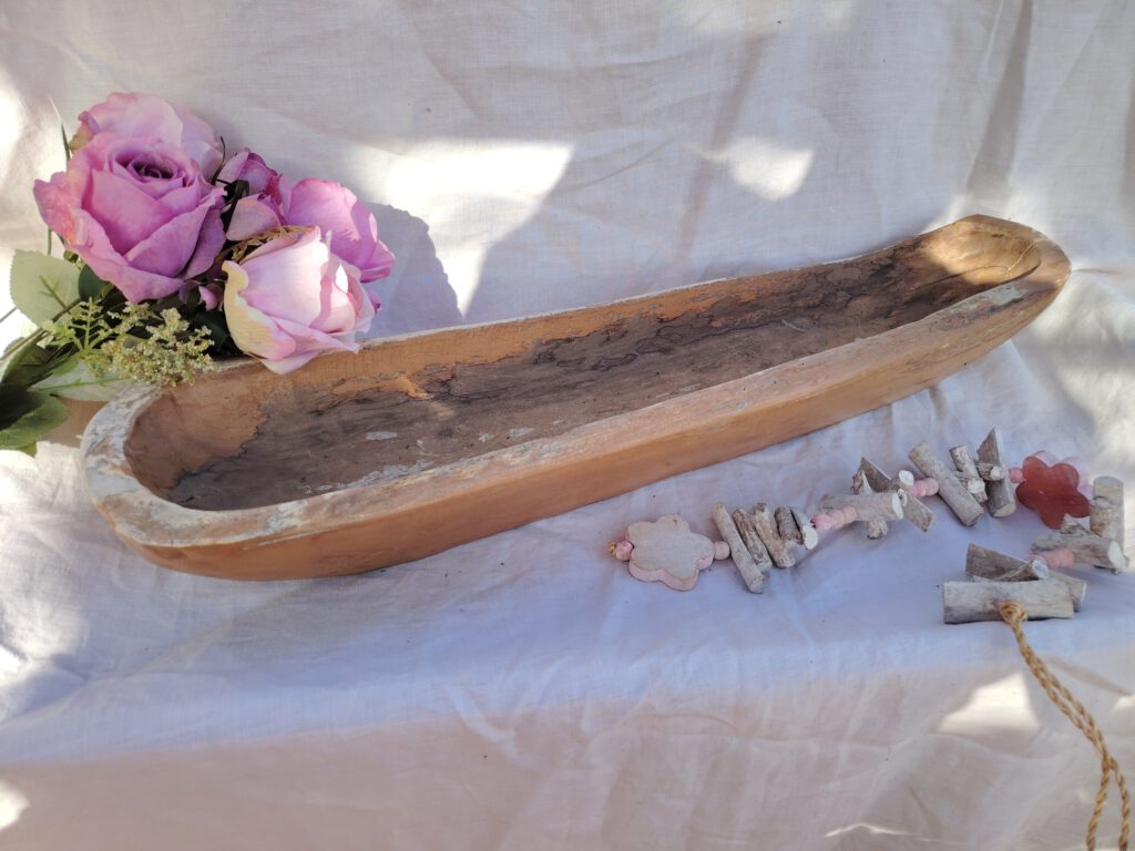 Ref.3186 : cuenco rústico de madera natural (largo : 70 cm, ancho : 17 cm, peso : 2,4 kg)